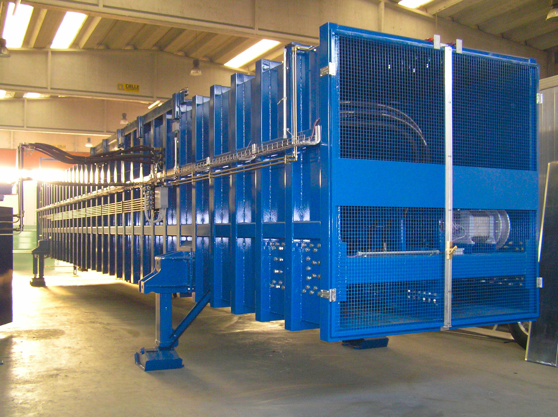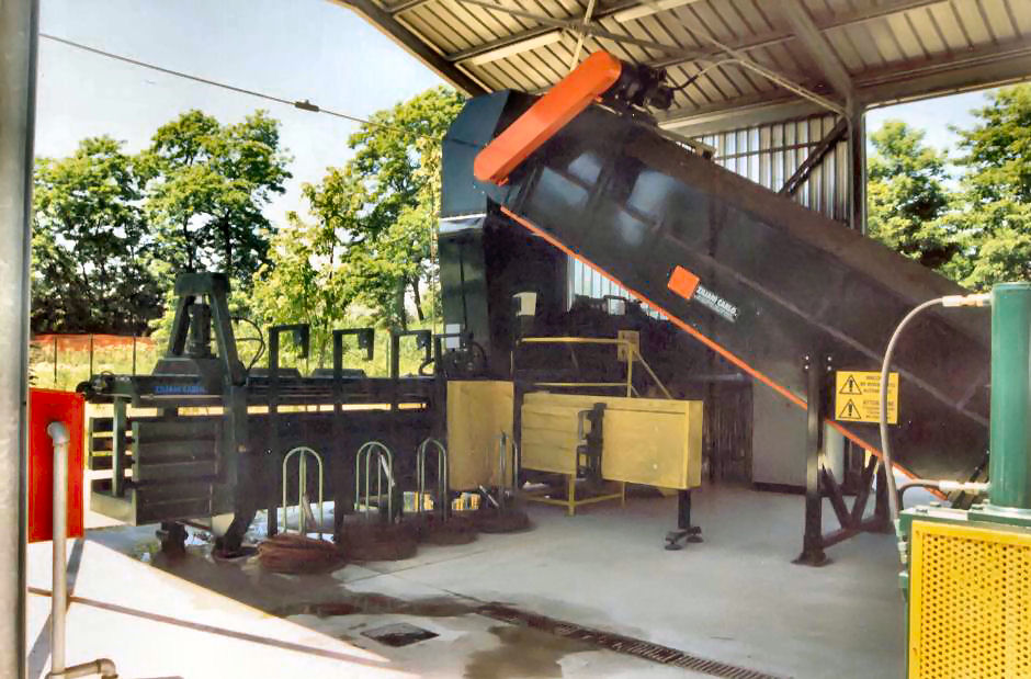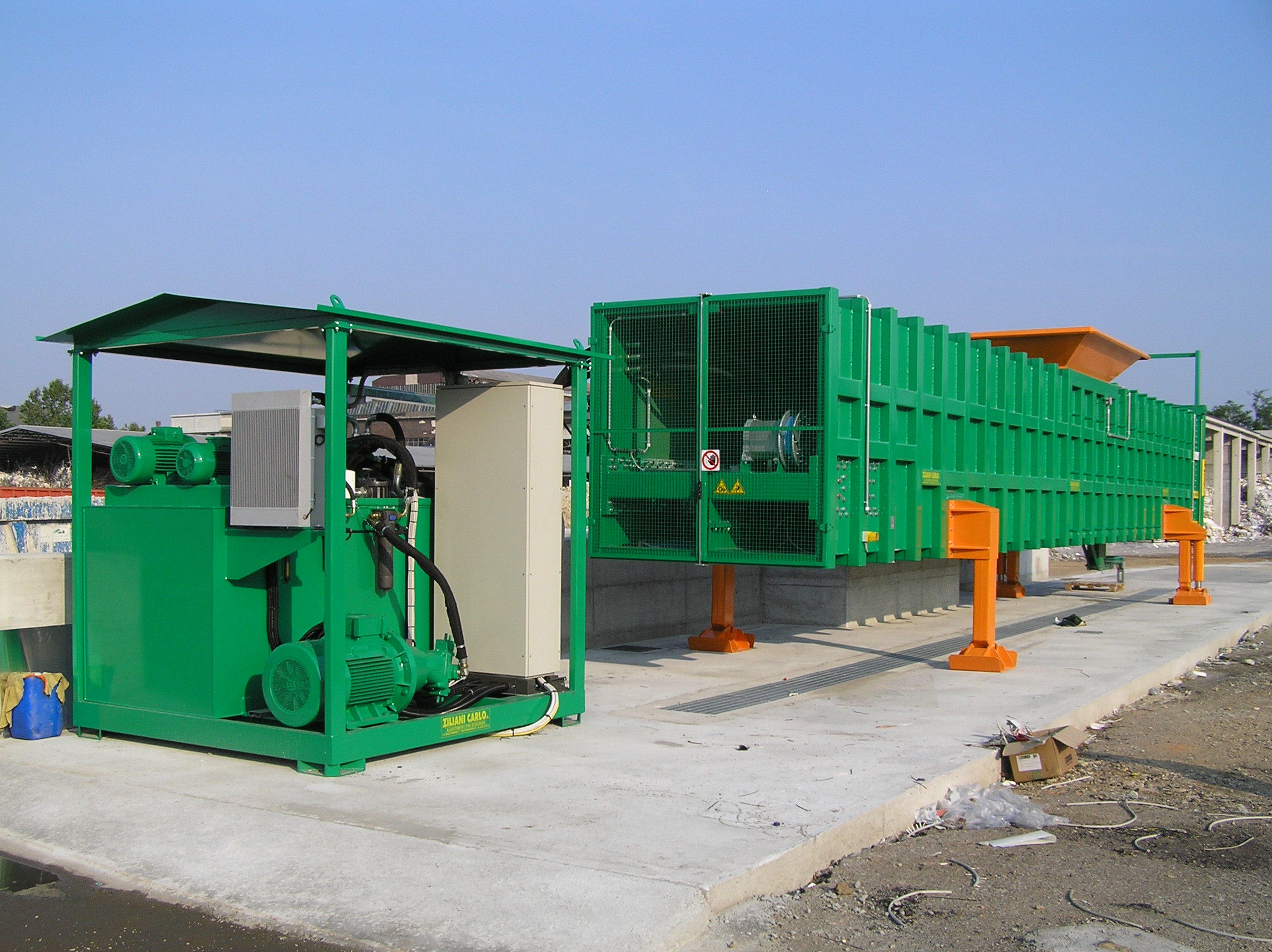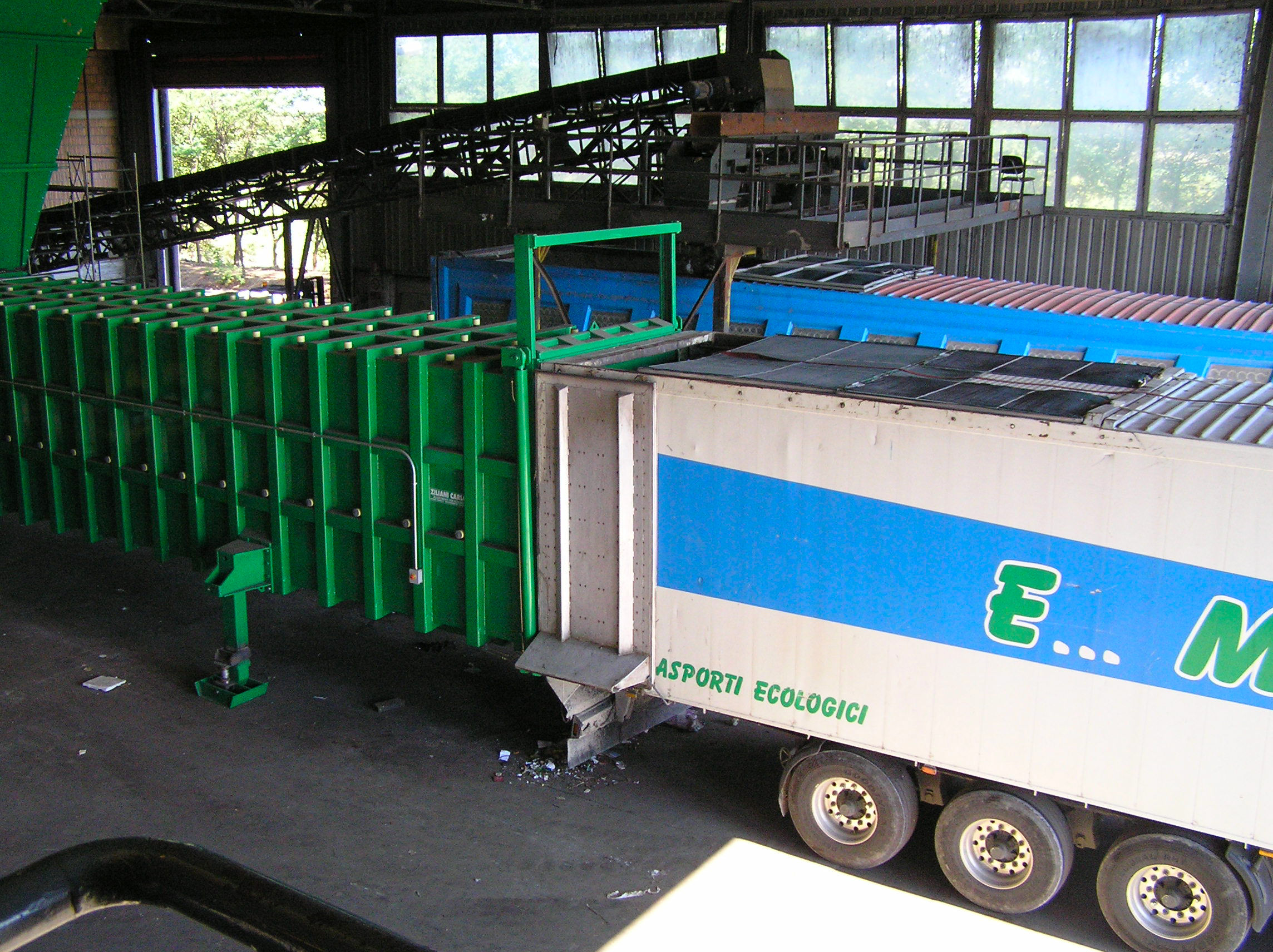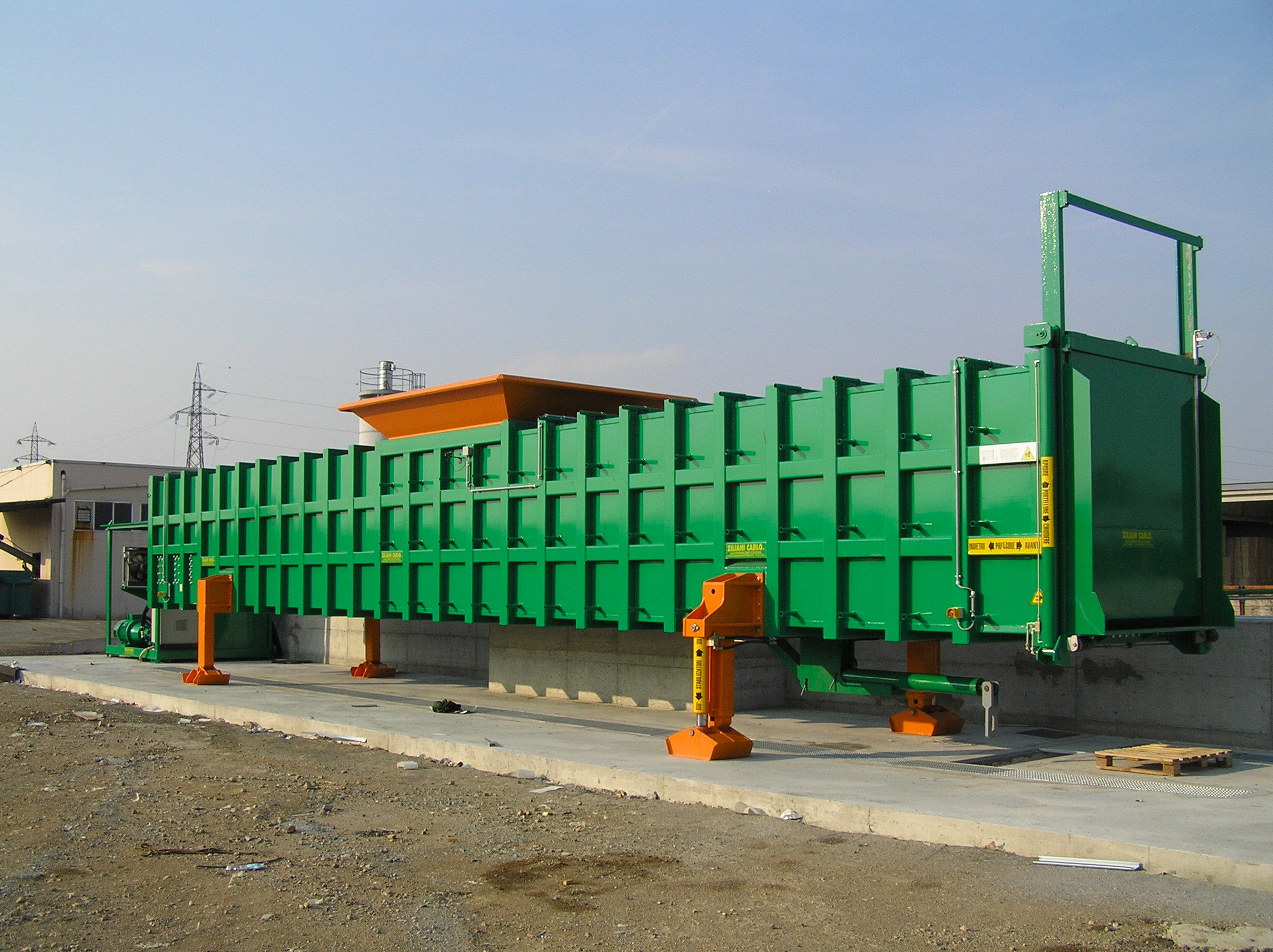 Queste grandi presse sono solitamente la parte terminale di un impianto di trattamento del rifiuto e compattano una grande balla di 30 ton per poi spingerla a bordo dei piani mobili. Il tutto senza dover legare piccole balle, stoccarle, movimentarle ed a volte slegarle. Ne esiste una versione per cartiere per lo strizzamento del pulper.
